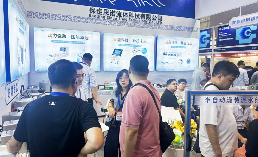 為期三天的展會,吸引了來自全國各地的參展商和觀眾,旨在助力制藥行業的健康快速發展。在展會現場,思諾流體展示了眾多蠕動泵產品,包括智能檢測蠕動泵系列產品,半自動灌裝流水線,AI智能蠕動泵、灌裝系統蠕動泵,新研發的蠕動泵泵頭和OEM等,吸引了眾多參觀者駐足咨詢,展臺人氣旺盛。