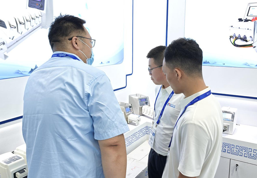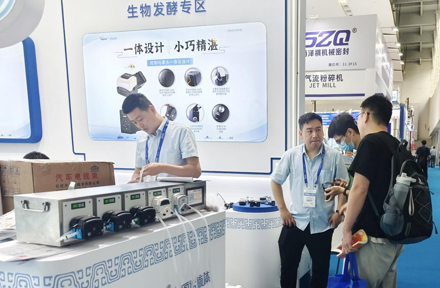 在展會現(xiàn)場,眾多參觀者對思諾蠕動泵表現(xiàn)出濃厚興趣,紛紛駐足了解產(chǎn)品性能及應(yīng)用場景。