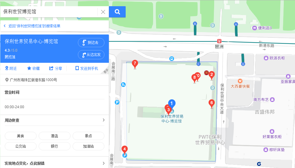 ? ?琶洲站地鐵口接駁機場及其它地鐵線路,便捷到達廣州市區,出地鐵口步行可直達展廳門口。