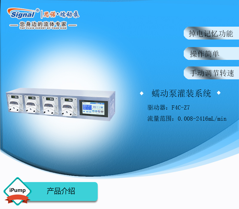 此灌裝系統(tǒng)由4通道組成,通道數(shù)量可定制,大可擴(kuò)展至32通道;可安裝YZ15、YZ25泵頭;