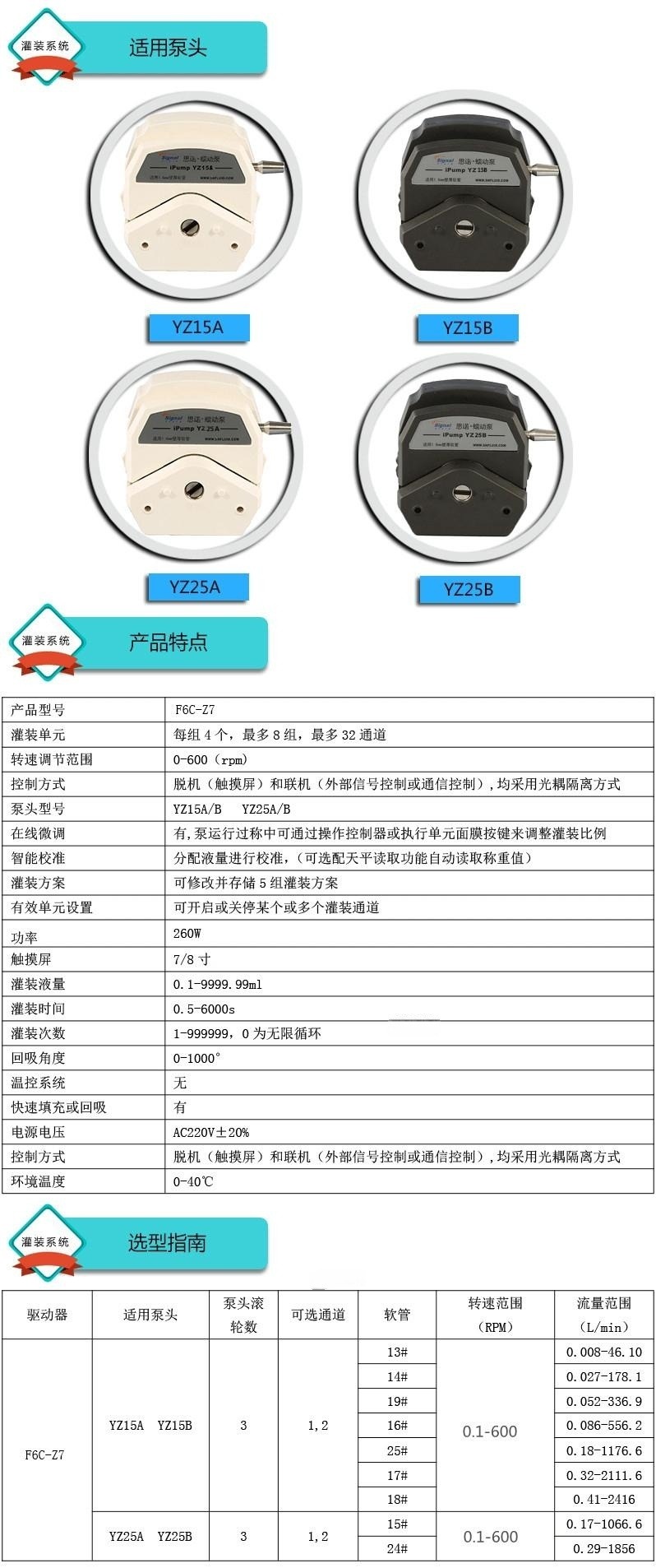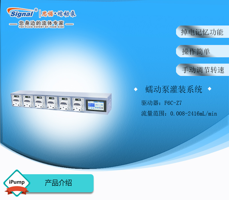 此灌裝系統由6通道組成,通道數量可定制,大可擴展至32通道;可安裝YZ15、YZ25泵頭;