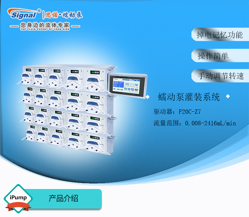 此灌裝系統(tǒng)由20通道組成,通道數(shù)量可定制,大可擴(kuò)展至32通道;可安裝YZ15、YZ25泵頭;