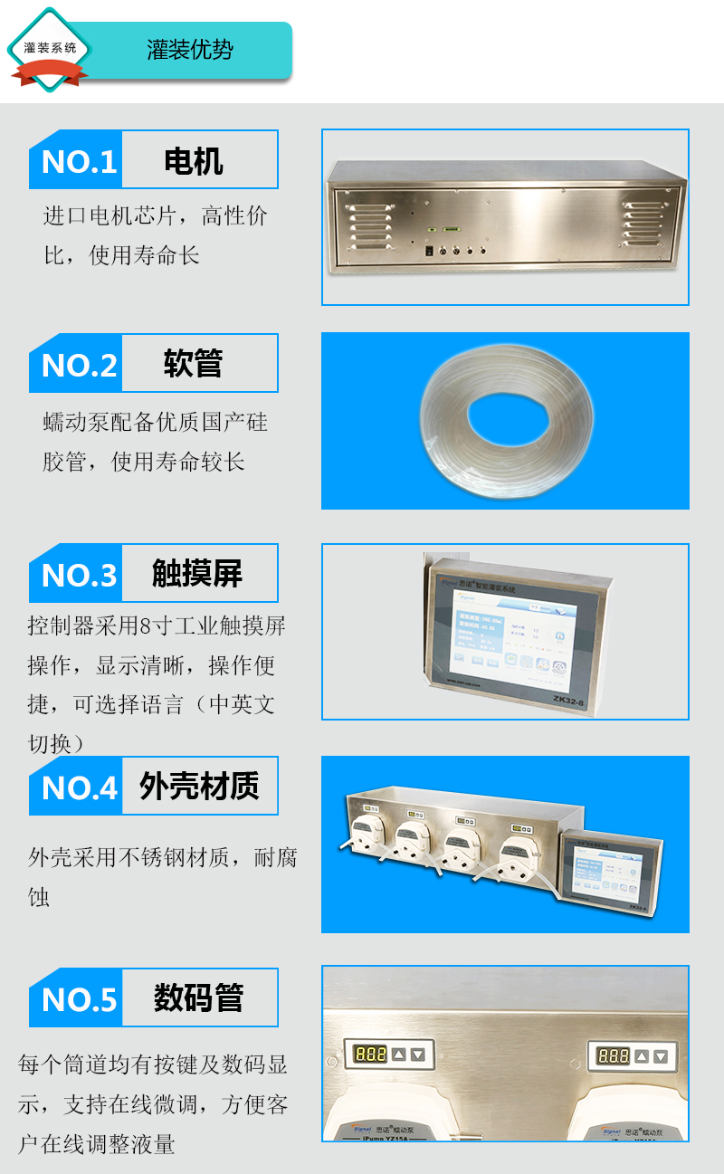 1.系統由6組基本通道一臺控制器組成,可安裝YZ15、YZ25泵頭 2.外殼采用不銹鋼材質,耐腐蝕。每通道均有按鍵及數碼顯示 3.采用進口電機驅動芯片,性能優越 4.線路板全部三防漆處理,防腐、防潮