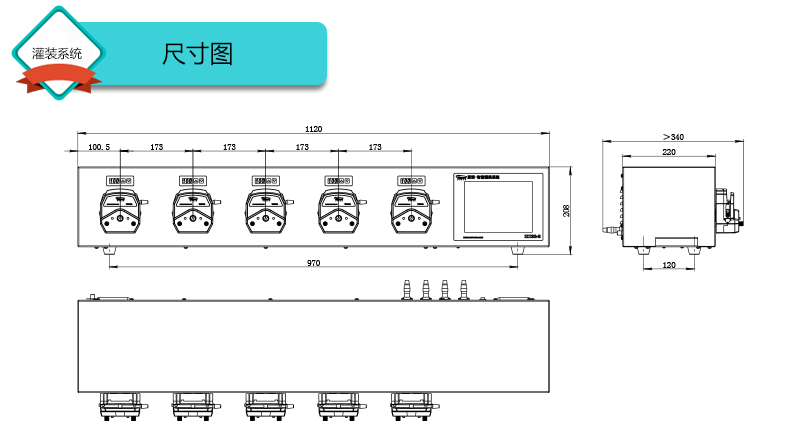 1.灌裝系統由5組基本通道(可擴展至32通道),一臺控制器組成,可安裝YZ15、YZ25泵頭