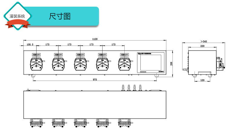 1.灌裝系統(tǒng)由4組基本通道(可擴(kuò)展至32通道),一臺(tái)控制器組成,可安裝YZ15、YZ25泵頭