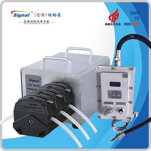 1.流量范圍:115.0-6061mL/min 2.免維護交流防爆減速電機驅動,變頻器調節轉速 3.電機扭矩大,可級聯雙泵頭 4.防爆等級DIIBT4,適合易燃易爆環境使用 5.304不銹鋼外殼,易擦拭,耐腐蝕,便于攜帶
