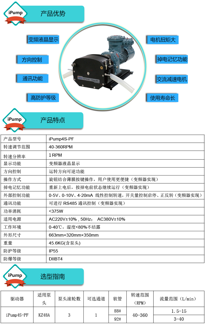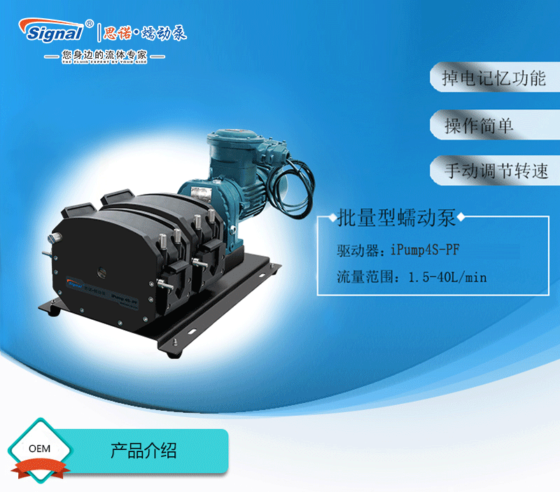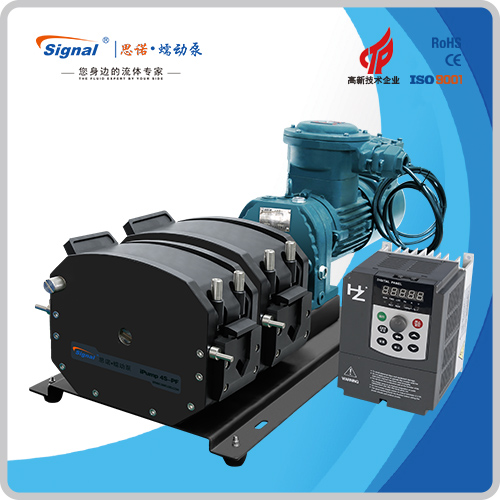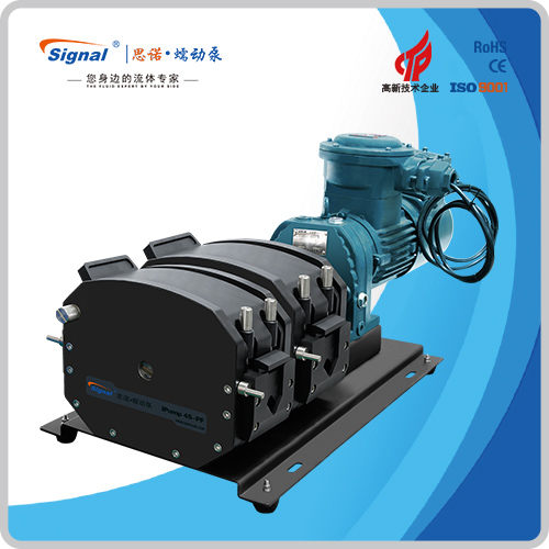 流量范圍:1.5-40L/min 彈性壓管結(jié)構(gòu),軟管壽命長,非常適合大流量液體傳輸 免維護(hù)交流減速電機(jī)驅(qū)動,變頻器調(diào)節(jié)轉(zhuǎn)速 全金屬泵頭,高精度,更可靠 防爆等級DIIBT4,適合易燃易爆環(huán)境使用