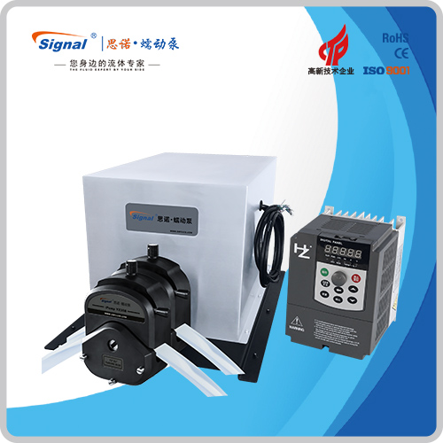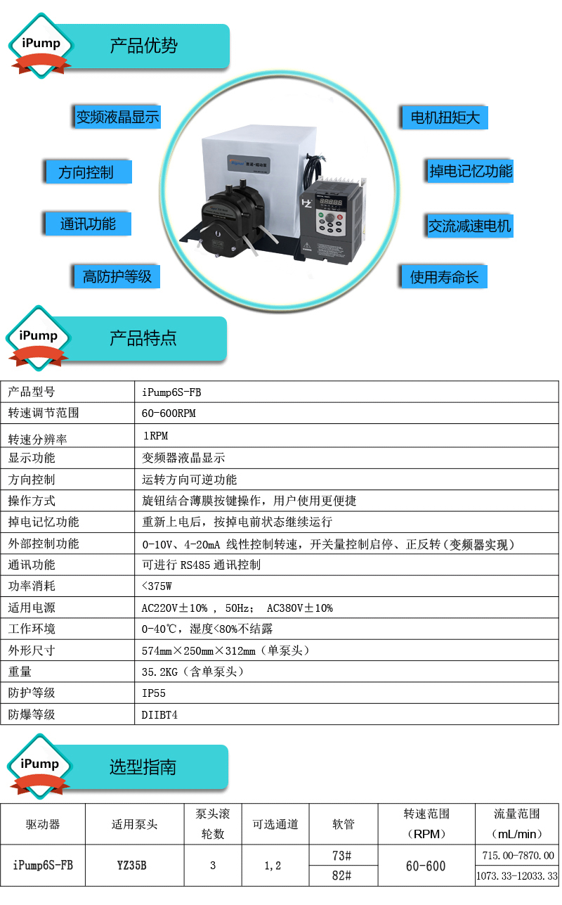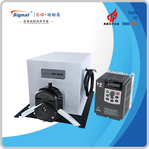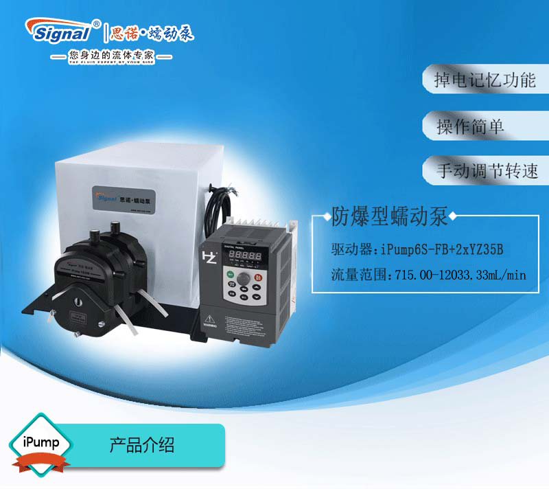 流量范圍:715-12033.33mL/min 免維護交流防爆減速電機驅動,變頻器調節轉速 電機扭矩大,可級聯雙泵頭 防爆等級DIIBT4,適合易燃易爆環境使用