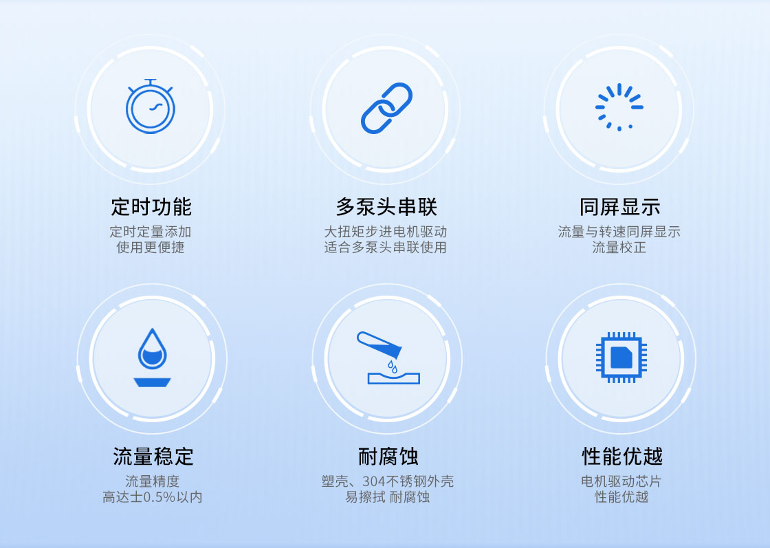 2.大扭矩步進(jìn)電機(jī)驅(qū)動(dòng),適合多泵頭串聯(lián)使用;