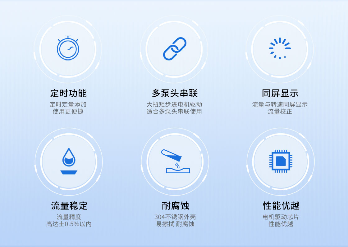 2.大扭矩步進電機驅動,適合多泵頭串聯使用;