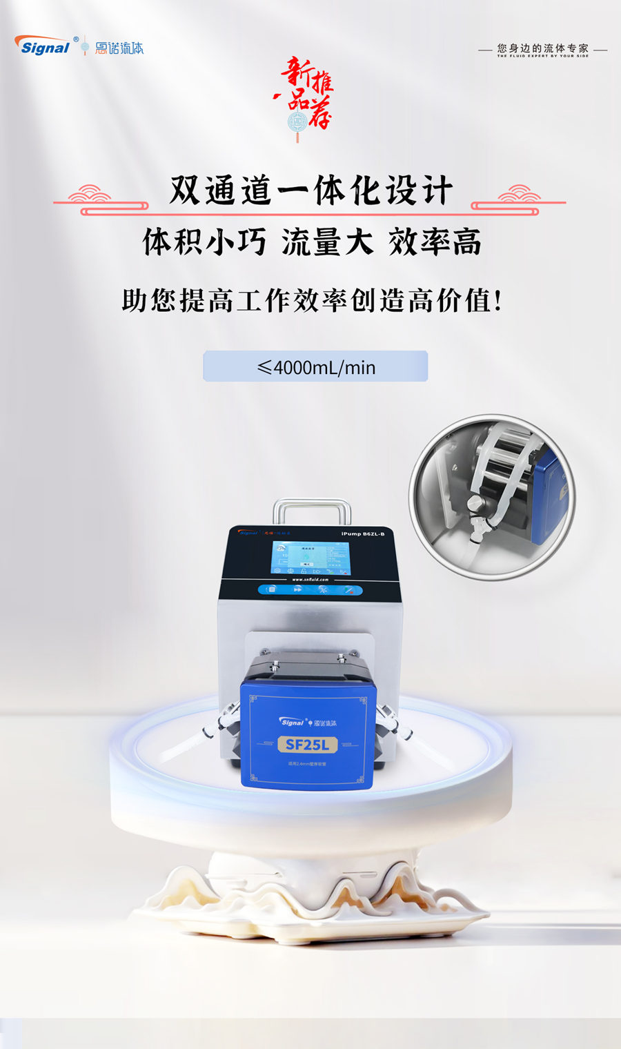 思諾iPumpB6ZL-B+SF25L蠕動泵新品上市,在實用性、便捷性和安全性上實現了升級,在制藥灌裝等領域帶來不錯的液體傳輸體驗。