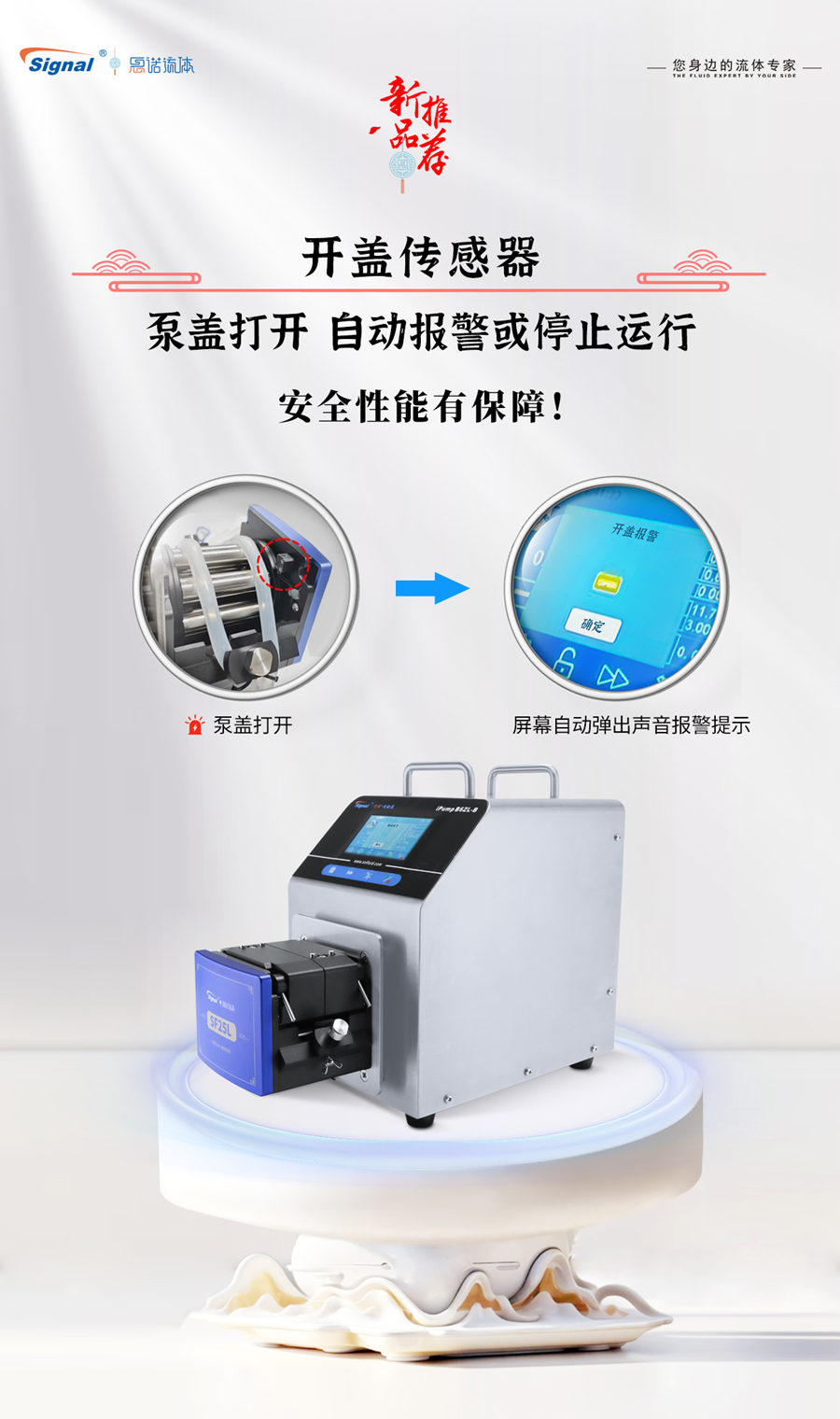 同樣作為選裝配置的開蓋傳感器,能夠檢測泵蓋是否處于打開狀態。當泵蓋被打開時,傳感器將立即觸發報警或自動停止泵的運行。這一設計不僅確保了操作人員在維護設備時的安全,還防止了因誤操作而導致的設備損壞和液體泄漏。
