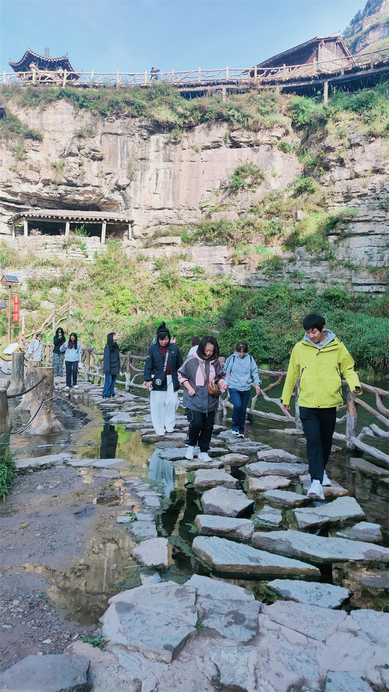 后一日,我們來到了古老神奇的懸空村——一座堪稱建筑奇跡的“掛”在懸崖上的古村落。這里石屋錯落,棧道蜿蜒,俯仰之間皆是風景。