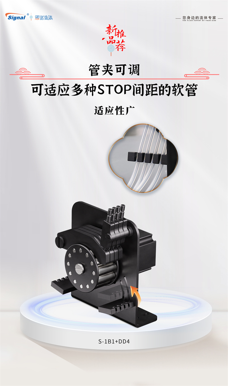 在該系列蠕動泵中,S-1B1+DD4蠕動泵管夾具備可調功能,兼容多種STOP間距的軟管,大大增強了產品的適用性與靈活性。