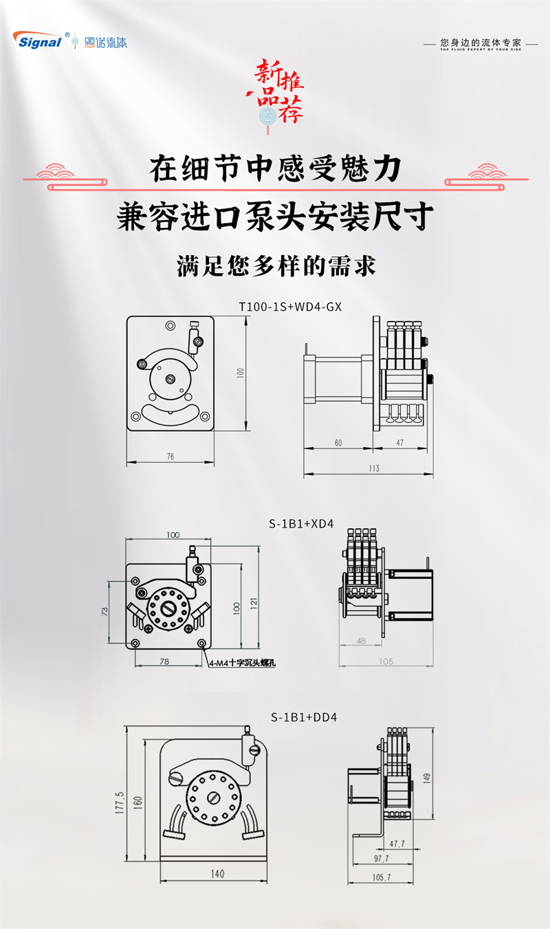 此外,T00-1S+WD4-GX蠕動泵泵頭安裝尺寸與主流進口品牌兼容,可直接替代現有進口泵頭,無縫集成至您的系統,顯著節省更換與適配成本。