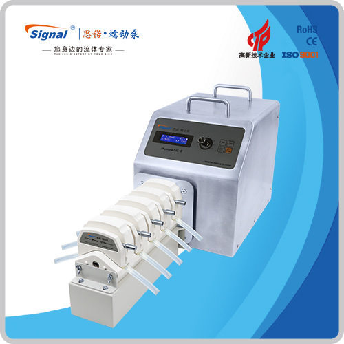 蠕動泵產(chǎn)生的壓力,主要是靠滾輪擠壓軟管的方式來吸取和推動流體傳輸,但要保持一定的密封性,才會產(chǎn)生一定的壓力。它的壓力是靠壓管間隙來決定的,壓力的大小取決于壓管壓得松緊,壓管越松,壓力就會越小,軟管的壽命會越長,松到不密封的時候就沒有壓力了。
