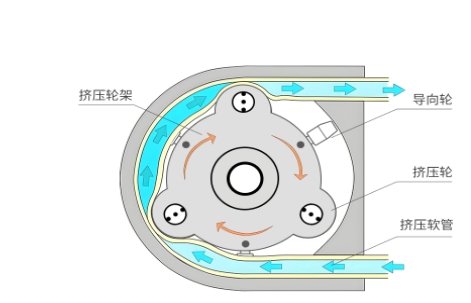 “擠壓-回彈”的循環(huán):電機(jī)帶動(dòng)轉(zhuǎn)子旋轉(zhuǎn),輥輪依次碾壓軟管,形成局部封閉的液腔