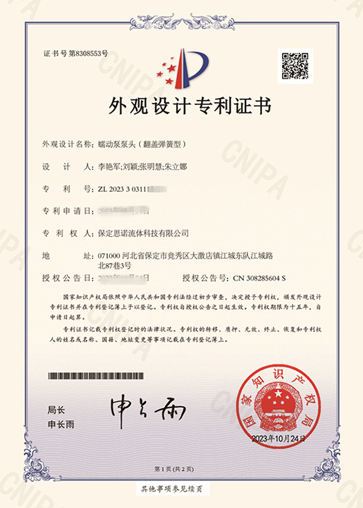 蠕動(dòng)泵泵頭翻蓋彈簧型外觀設(shè)計(jì)專(zhuān)利