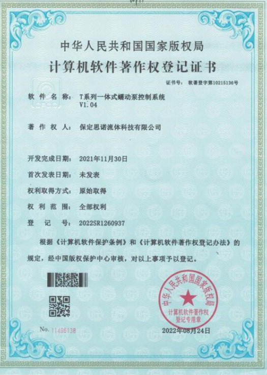 保定思諾流體科技有限公司成立于 2011 年,主要從事蠕動泵、蠕動泵 OEM 產品、蠕動泵灌裝系統、注射泵的研發、生產與銷售,先后榮獲高新技術企業、河北省專精特新中小企業和全國科技型中小企業等榮譽稱號。